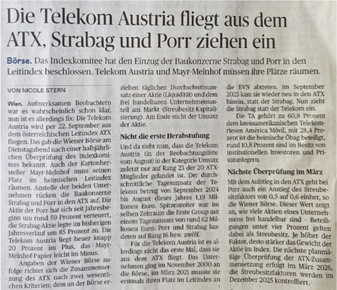 Die Baukonzerne Strabag und Porr sind nun im ATX, dem wichtigsten Aktienindex an der Wiener Börse. Dort kommt man als Unternehmen nur hin, wenn man groß ist, in der Vergangenheit Gewinne erzielt hat und auch die Aussicht auf Gewinnerzielung gut ist. Einerseits.