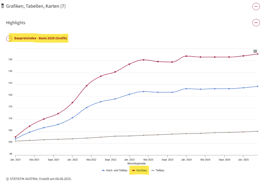Und wir alle im Donaufeld glauben, dass die Anstiege im HOCH-Bau-Preisindex auf externe Faktoren (Energie, usw) zurückzuführen sind und sind sicher, dass nicht wieder ein Ordner (wie beim Straßen-Kartell) auftaucht, in dem aufgelistet ist, wie im HOCH-Bau die Gewinne mittels Kartell-Absprachen auf Kosten der Allgemeinheit unredlich erhöht werden.