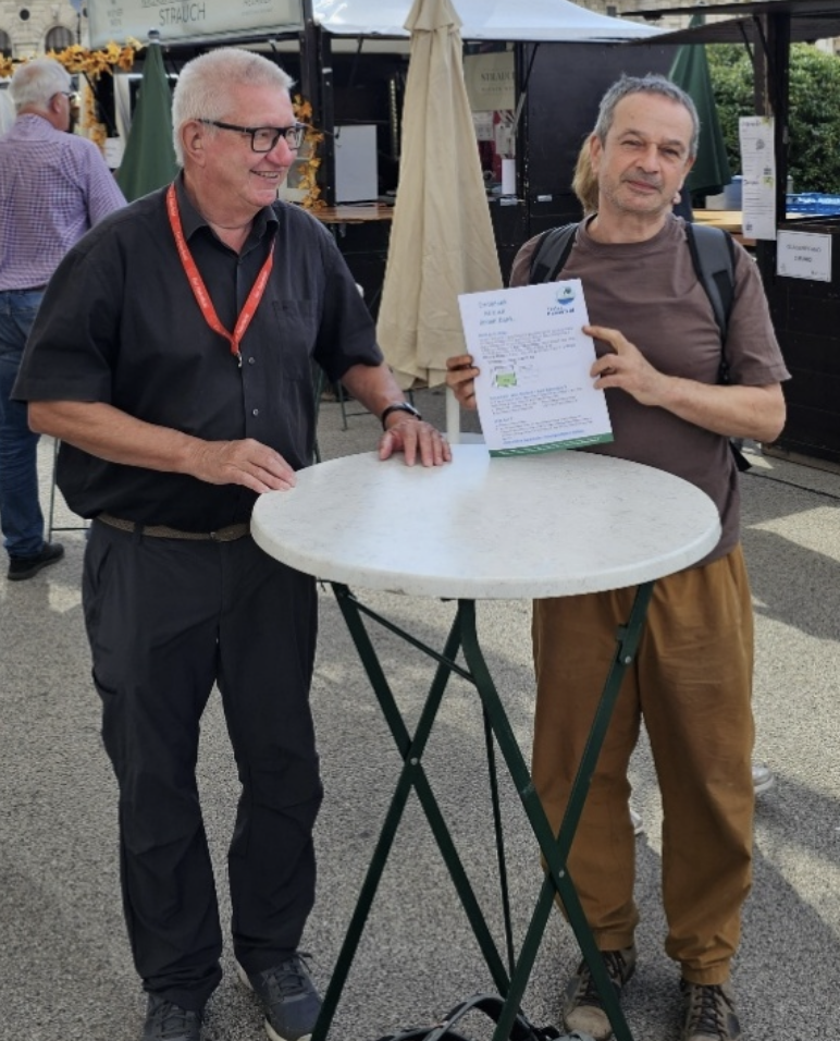 Unter diesem Motto waren Peter (rechts) und Robert am Samstag, den 06.09., beim Ernte-Dank-Fest der Landwirtschaftskammer am Heldenplatz anwesend: Wir haben etliche Gespräche geführt, unsere Flyer verteilt und konnten Unterschriften für unsere Petition sammeln.